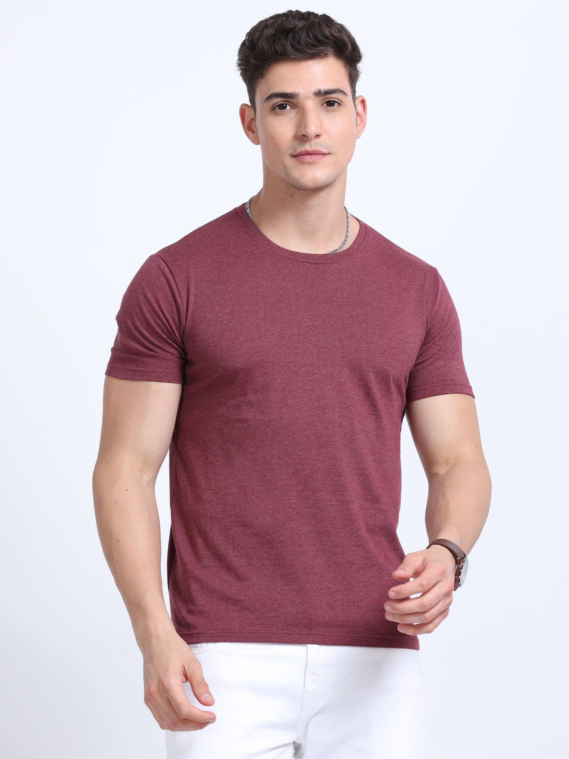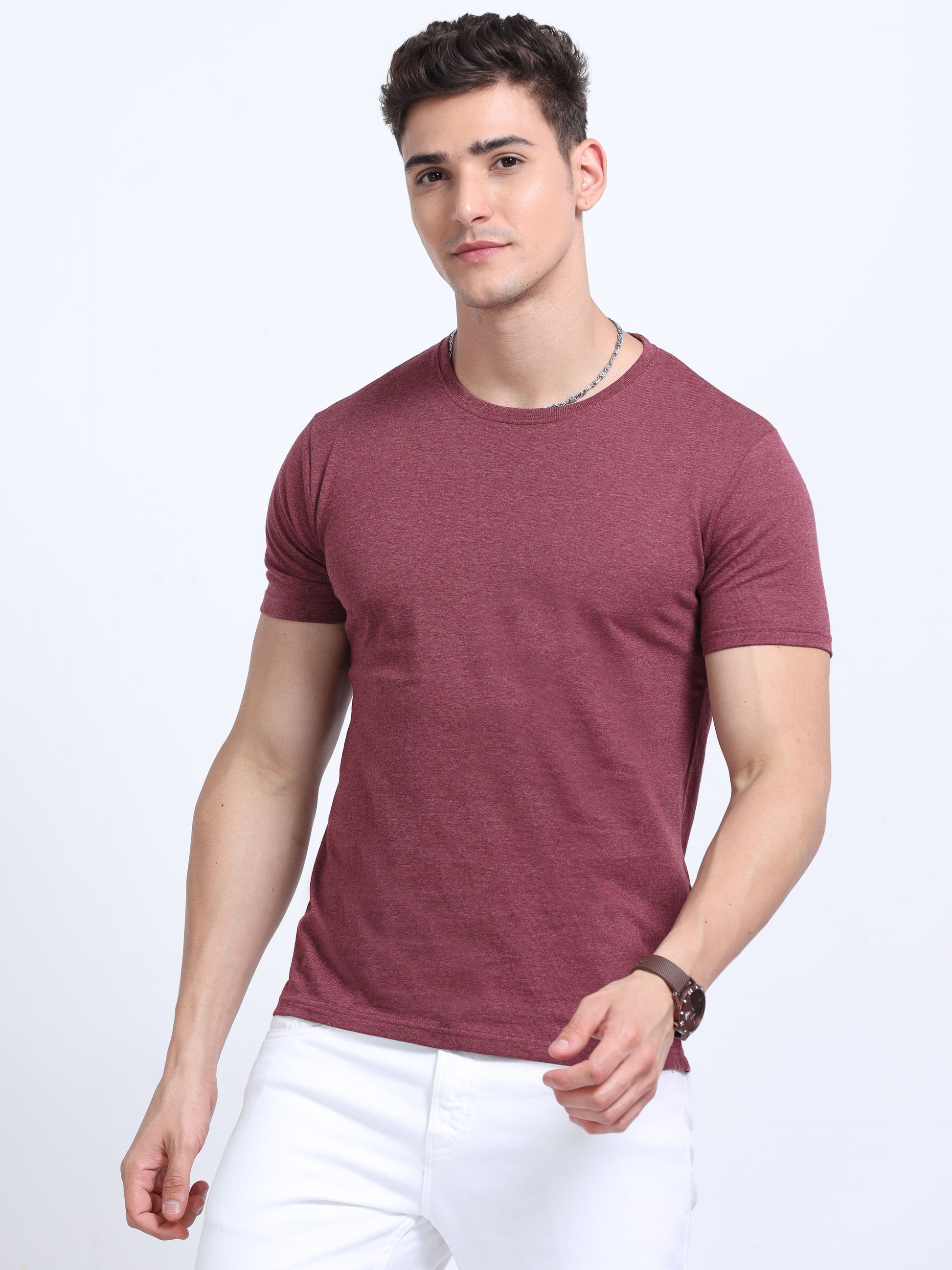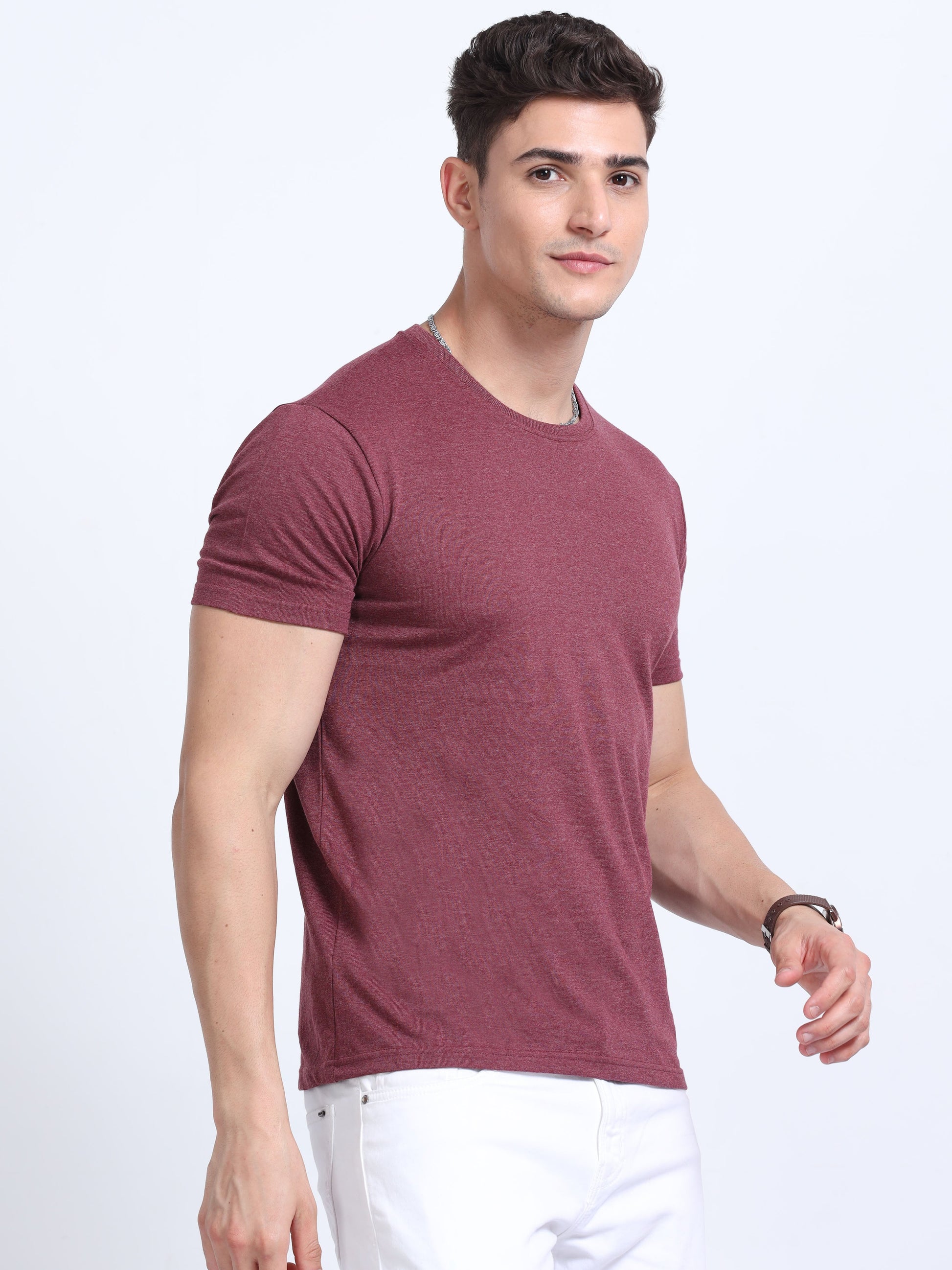 EcoBlend Round Neck Tshirts - Maroon Melange