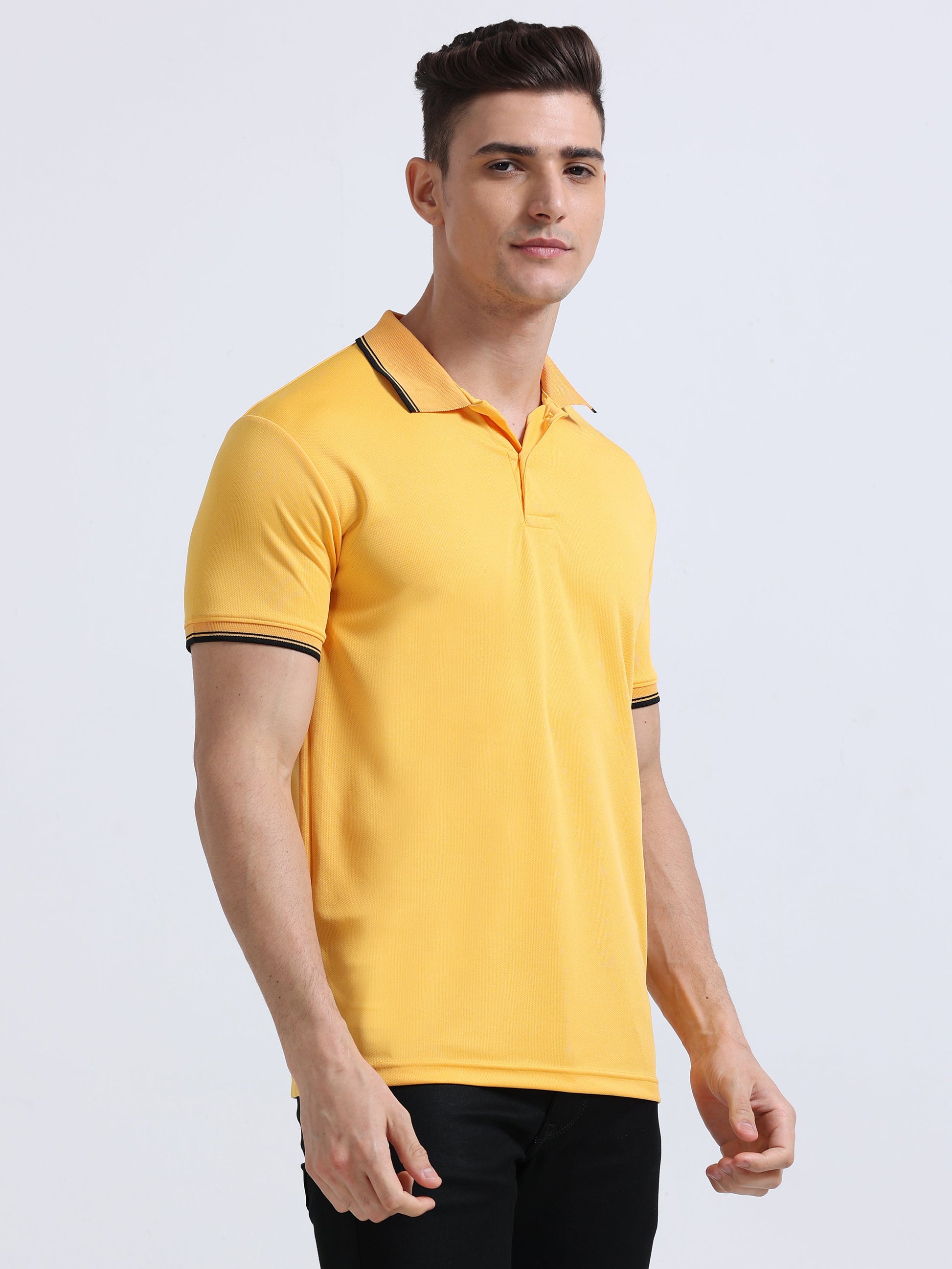 PrimoKnit Dotcell Polo - Gold Yellow with Black Tipping